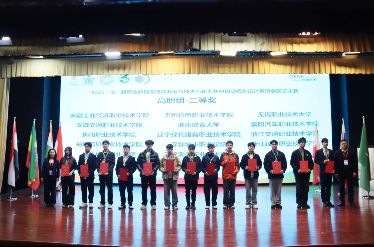 近日,2025“一带一路”暨金砖国家技能发展与技术创新大赛“AI视觉检测设计”赛项全国决赛在浙江义乌落幕。在与全国150余所院校300余名选手的激烈竞争中,我校汽车智能制造学院参赛的4支队伍全部获奖,共斩获国家级二等奖1项、省级一等奖1项、省级二等奖2项的成绩。其中,由刘永双、任婕灵老师指导,刘宇轩、肖燕希、王雨悦三位同学组成的代表队,更是在缺乏专用竞赛设备的条件下,凭借出色的AI算法创新与虚拟仿真能力,勇夺全国总决赛二等奖,实现了“软实力”对“硬竞赛”的精彩破局。