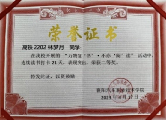林梦月刻苦钻研高铁乘务专业知识,不仅课堂上全神贯注,课后还主动查阅资料,深化理解。她积极参与模拟演练和实习,将理论知识转化为实践能力,积累了丰富的服务经验。为了提升就业竞争力,她还注重全面发展。她参加了礼仪培训,提升了服务仪态;还考取了普通话证、获得了技能大赛等技能证书,为职业生涯增添了砝码。