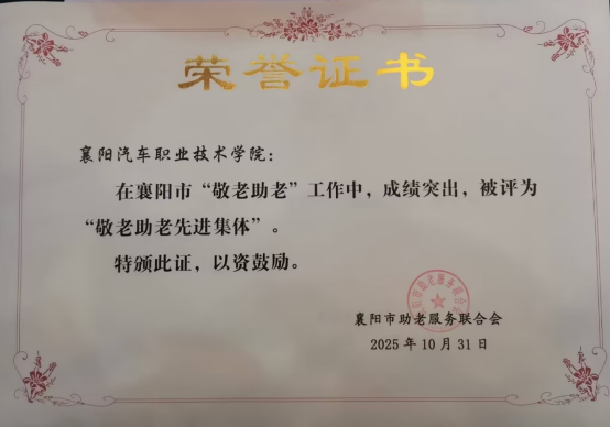 10月31日,襄阳市助老服务联合会在襄阳农工集团会议中心召开敬老助老工作总结表彰大会。会议表彰了2025年度敬老助老先进,我校荣获“敬老助老先进集体”称号,离退休工作处唐琳同志获评“敬老助老先进个人”。