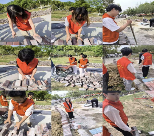 建设时,队员们在工人师傅指导下分工明确。有的队员不辞辛劳搬运砖块,哪怕汗水湿透衣衫也不停歇;有的专注学习铺设技巧,力求精准嵌入砖块;还有的精心调配沙土水泥,保障道路基层稳固。即便施工天气多变,队员们也未动摇,以坚韧毅力和吃苦精神,成为校园独特风景。