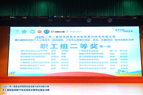 11月9日,为期三天的2025一带一路暨金砖国家技能发展与技术创新大赛第三届智能网联汽车应用技术(综合装调、计算平台部署与测试、仿真、车路协同)赛项全国总决赛圆满落幕。在缺乏专业训练设备的艰苦备赛条件下,我校代表队凭借扎实的专业功底与顽强的拼搏精神逆势而上。在与全国190支参赛队伍的激烈角逐中,我校代表队脱颖而出,一举斩获职工组二等奖、高校组三等奖。这一成果不仅彰显了学校在智能网联汽车领域深厚的专业教学积淀,更充分展现了师生团队卓越的创新思维与扎实的实践能力。