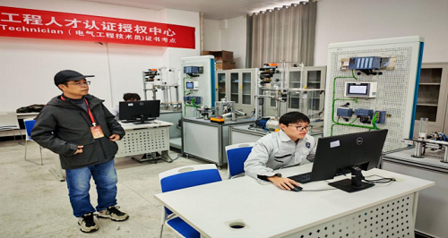 考核现场,15名考生沉着应战,在指定时间内有序完成设备组态、程序编写、在线调试等操作环节。校外专家全程深度参与考评,凭借丰富的工业实践经验,从行业应用标准出发,对考生的操作规范性、程序优化程度、调试效率等进行细致点评,结合企业真实案例为考生提供专业指导。