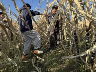 活动伊始,基地负责人向同学们详细介绍了甘蔗的生长特性、种植方法及采摘注意事项,内容涵盖成熟甘蔗的辨别特征、工具使用的安全规范以及避免损伤蔗苗的技巧等方面,讲解细致全面。随后,在教师带领下,同学们分组进入甘蔗种植区开展实践,小心收割甘蔗,协作搬运至指定区域,清理蔗叶、整理成果。尽管田间泥土湿润,部分同学鞋裤沾满泥土,但大家热情不减,分工配合,展现出积极投入的劳动风貌。